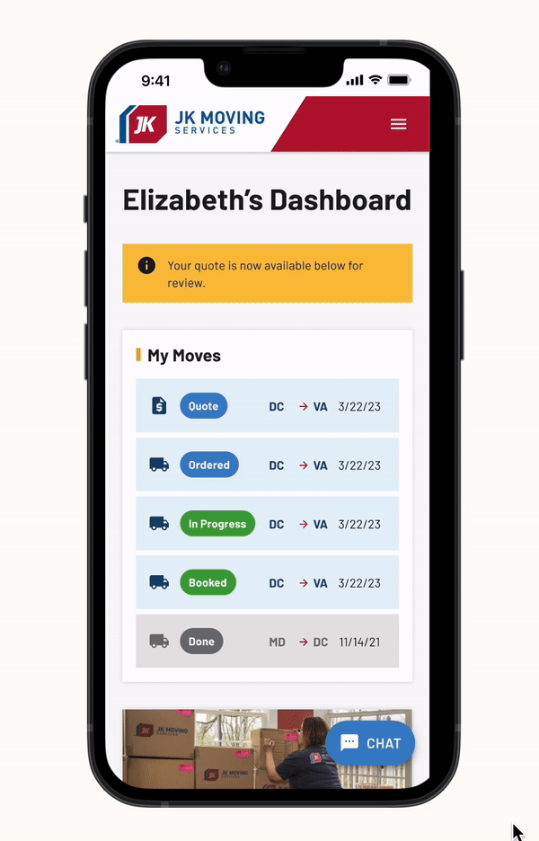 After creating the commercial portal, the JK Moving came back to us to create a portal for their residential customers.