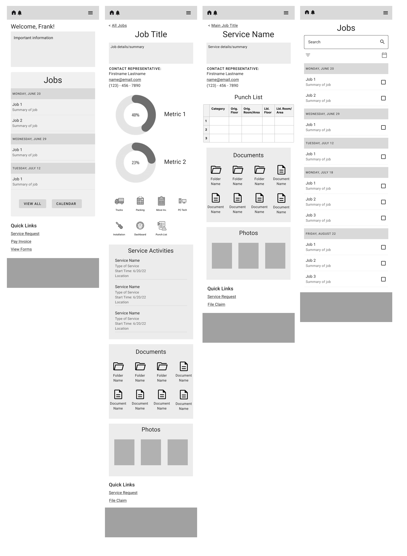 After the wireframes were approved I worked on the final designs. I used elements from the commercial portal, but wanted to update some of the designs, because this is customer facing. The client wanted MUI components used, so I used them when possible, customizing to fit.